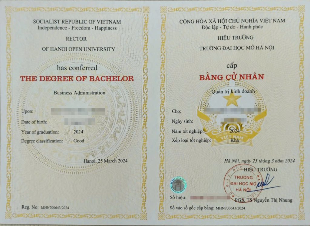 Mẫu bằng cấp cho sinh viên ngành Ngôn ngữ Anh năm 2025